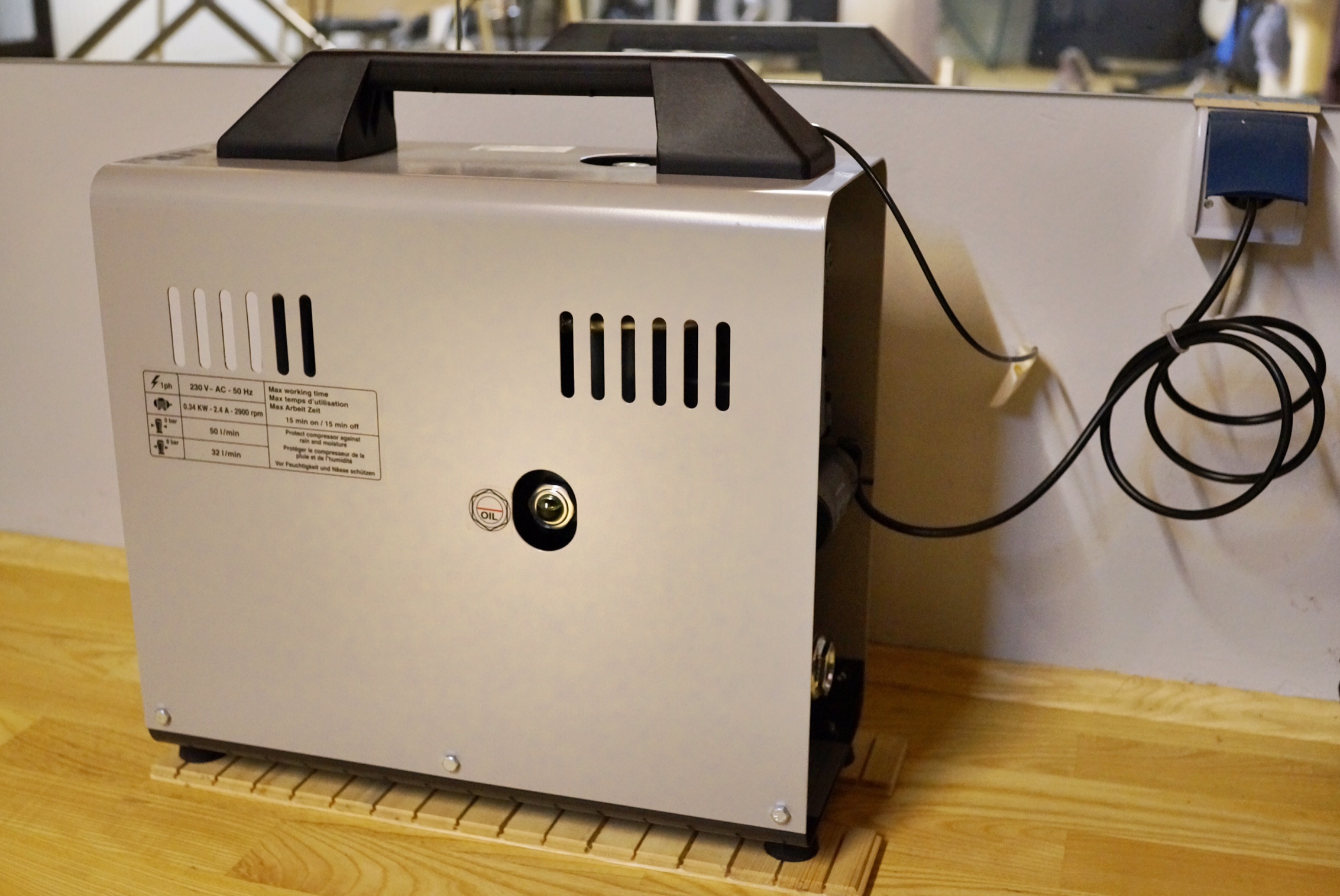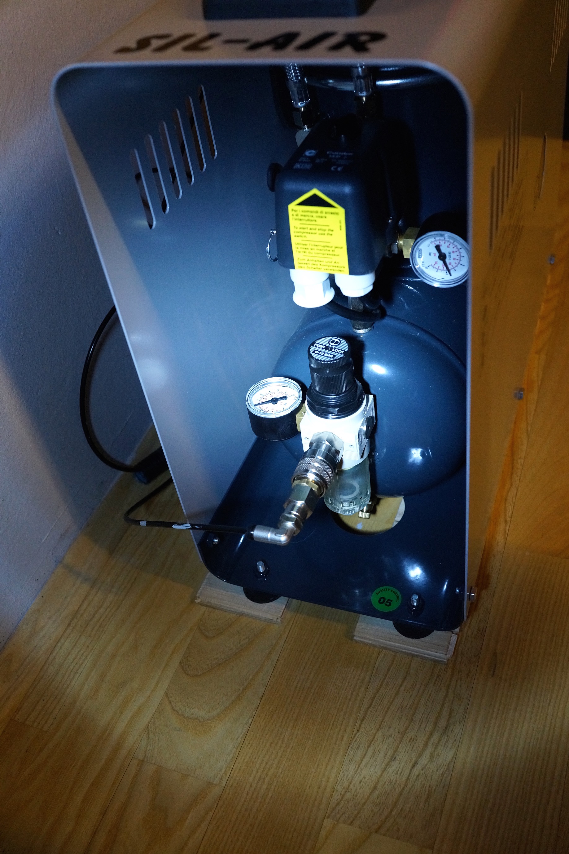 the bigger tank allows the machine to stay silent for about 20 minutes which is nearly a record side. Nevertheless I am operating the compressor some 50 meters away in a different room.