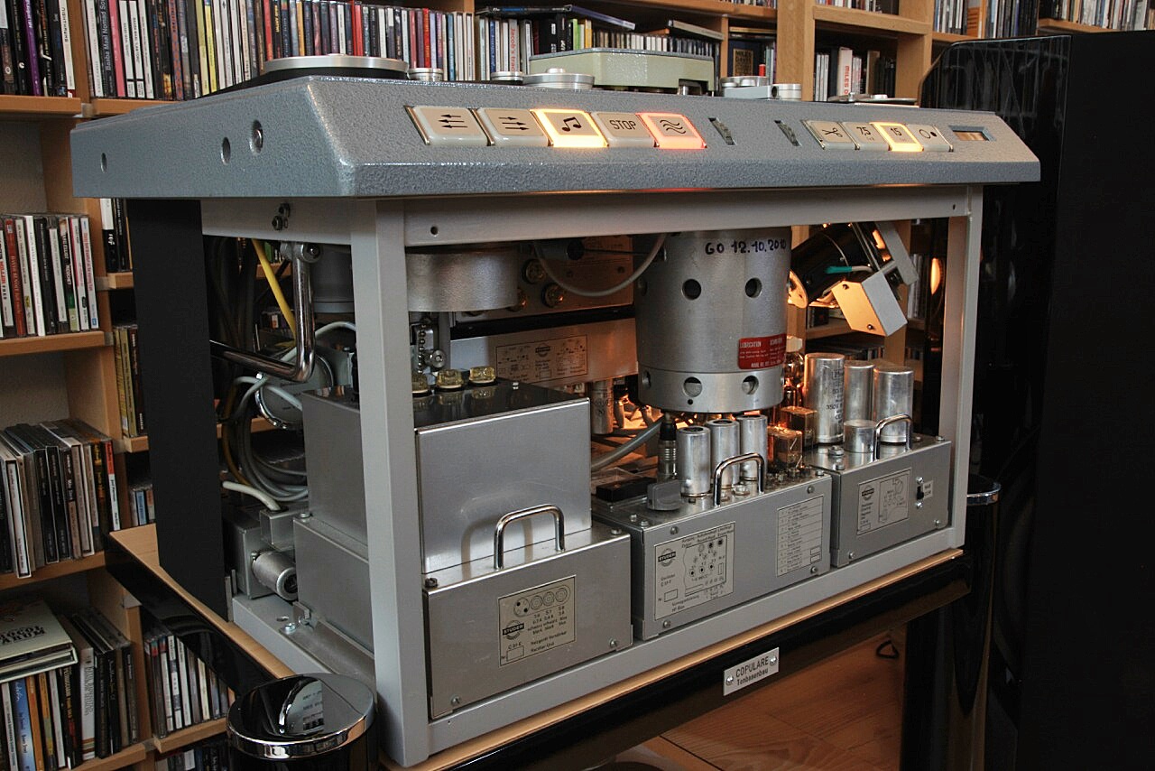 it is a tube based machine with a modern Butterfly Head (a second interchangable head carrier as well) sounding just great! It was completely revised four years ago and is in superb condition. Quite a rare piece. The counter is on 2184 hours. Maybe I will sell it as I am running out of space.