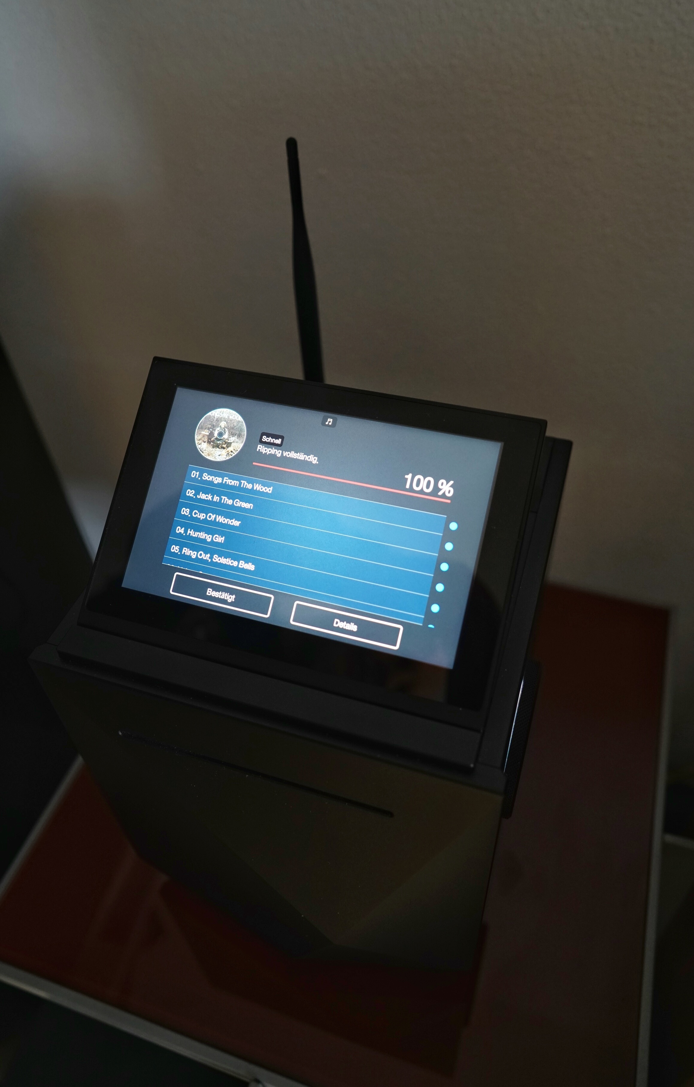 From that day on I started plans how to become a bit more flexible on my fixed assets, I mean the humble collection of stored music data. Being an 80% analogue guy I first put some thoughts in how to duplicate my LP collection not loosing too much of it’s sound quality when being played in a phono chain at home. In the end I decided how to do it but today is not the place talking about it, maybe at Xmas…