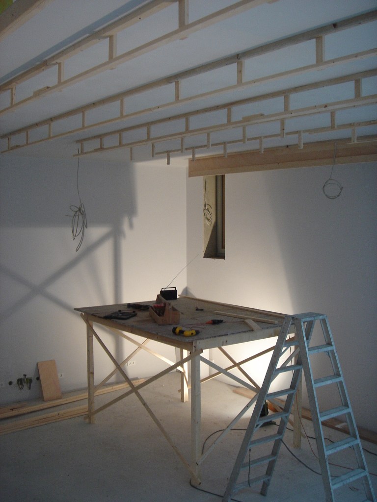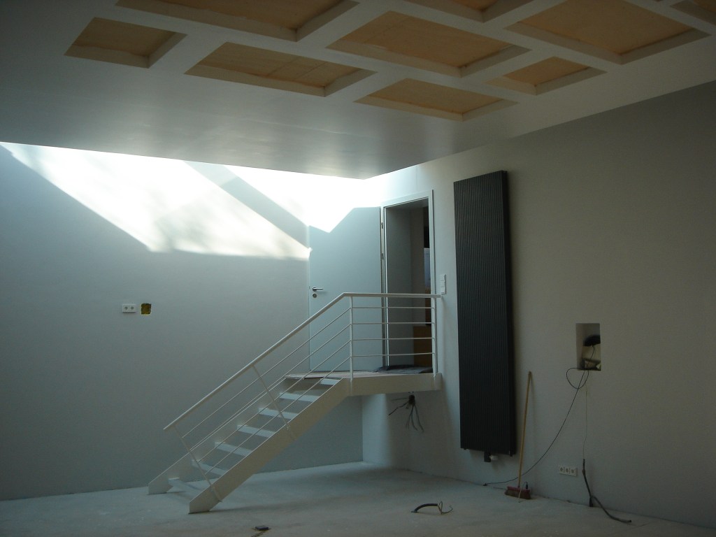 The walls are made of a 40 cm thick special concret mixture, should be the best in terms of a good listening room. I abstained from bringing in a floor heating or any air condition apparatus.