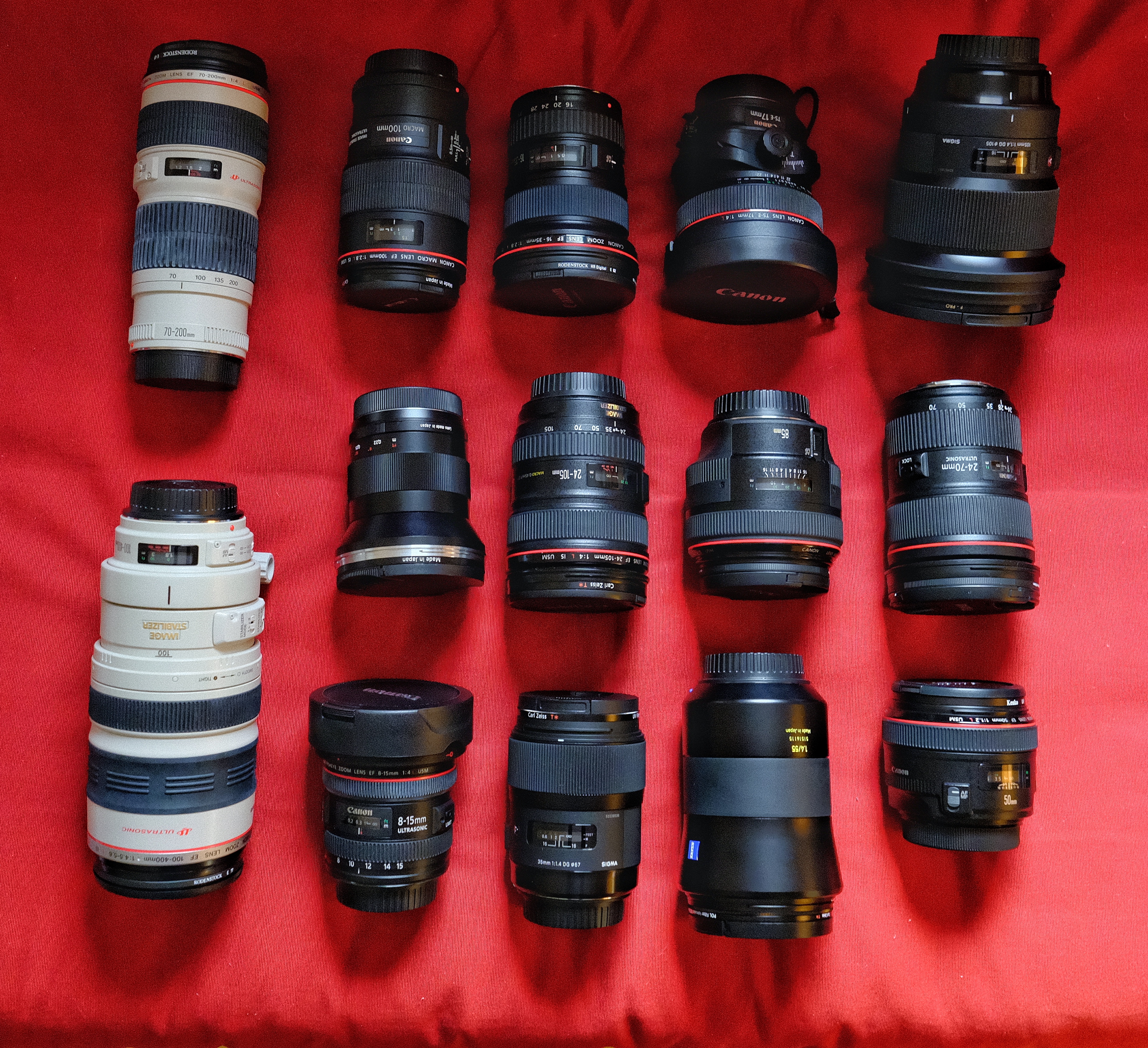 I use my Canon EOS 1 with the Ultrasonic 24-70 lens or other Canon lenses in different settings, sometimes with the head downside or just upright: