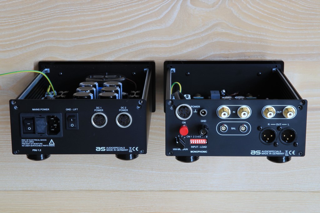 the Monophonic phono preamp (audiospecials.de) is a true Mono one! Coming with the additional PSU 1.2 (right unit) it is here put on low gain (see the yellow jumper of the left unit right above).