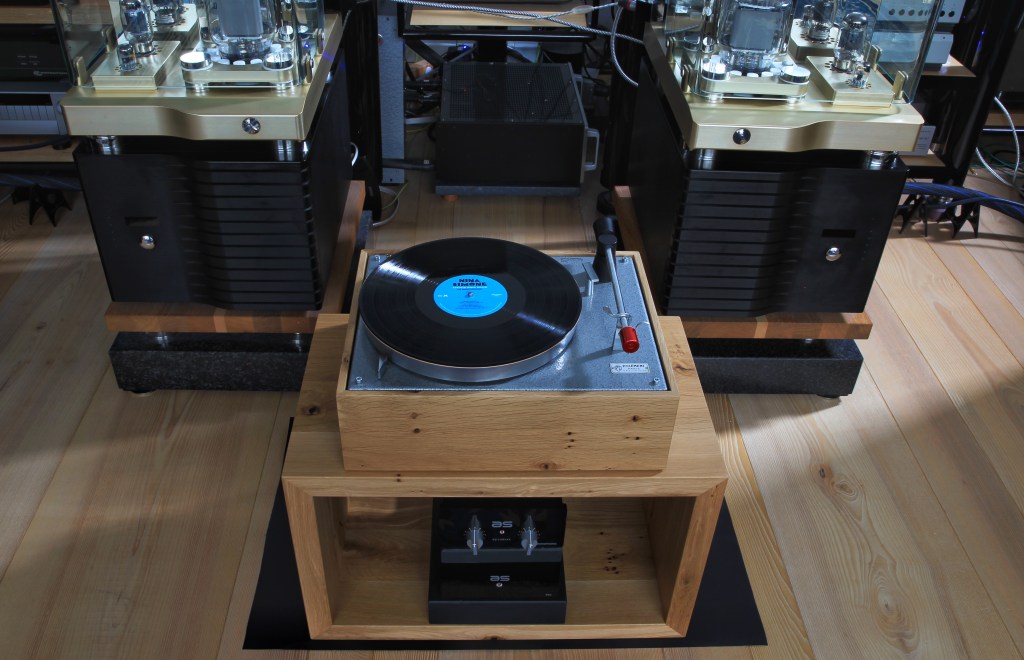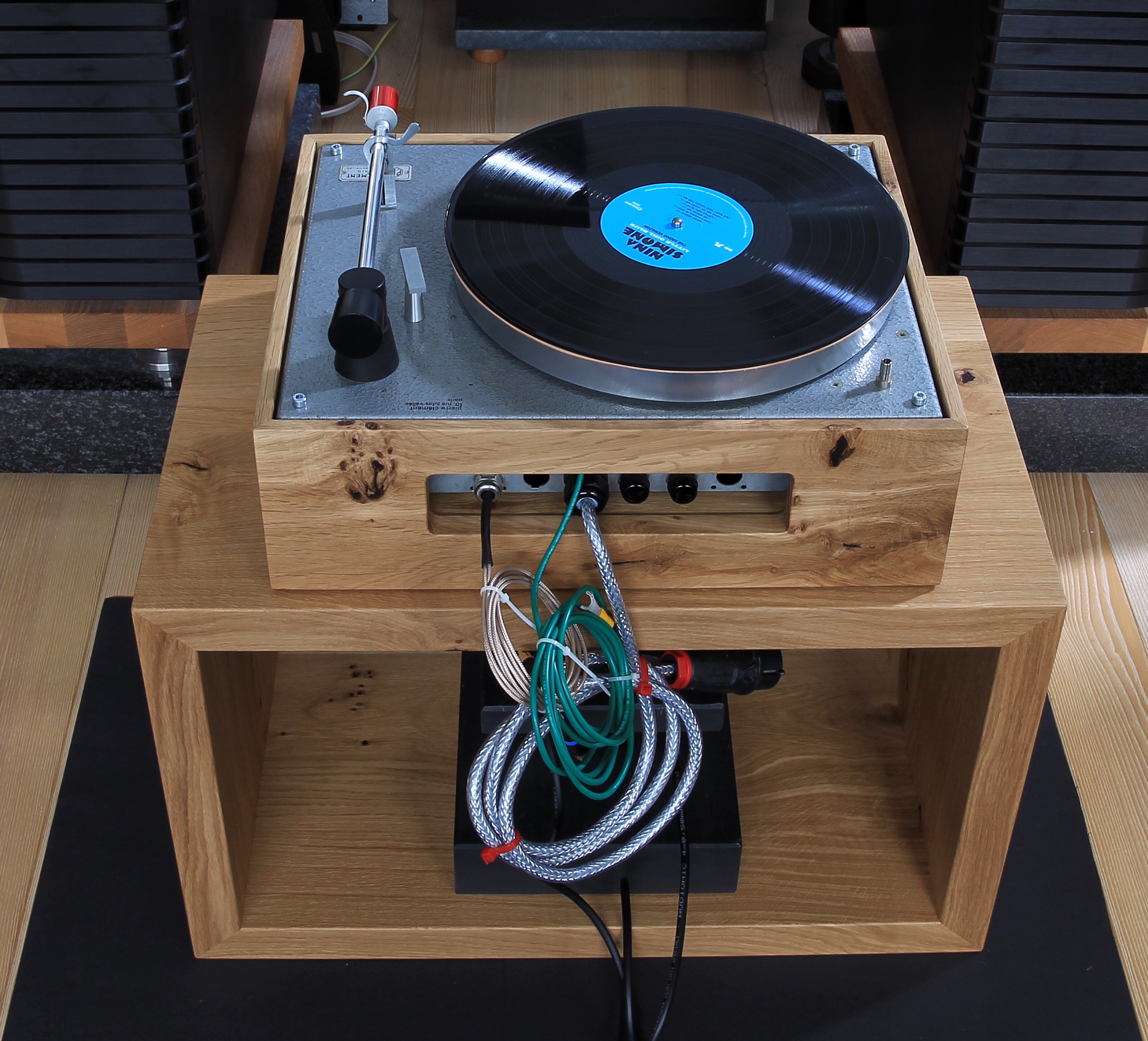 made from Canadian wild oak massive wood my carpenter developed a completely new plinth for the Pierre Clement Mono system. The rubber based mounting suspension was carefully implemented. With the new improvements regarding rewiring, complete system/needle repair and energy transfer this unit is pretty well optimized.