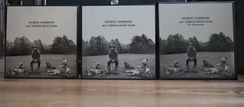 My results are different to the many comments I read in forums. The sound level of the 50th Anniversary edition is somehow a bit reduced, you may play it louder. On the other hand it is more balanced. My Sweet Lord sounds better, more dynamical with the 1970 UK pressing while What is Life sounds better with the 50th anni. The 1970 and 2001 edition overemphasize the bass and the “Sound of Wall” comprises partly a mushy picture.