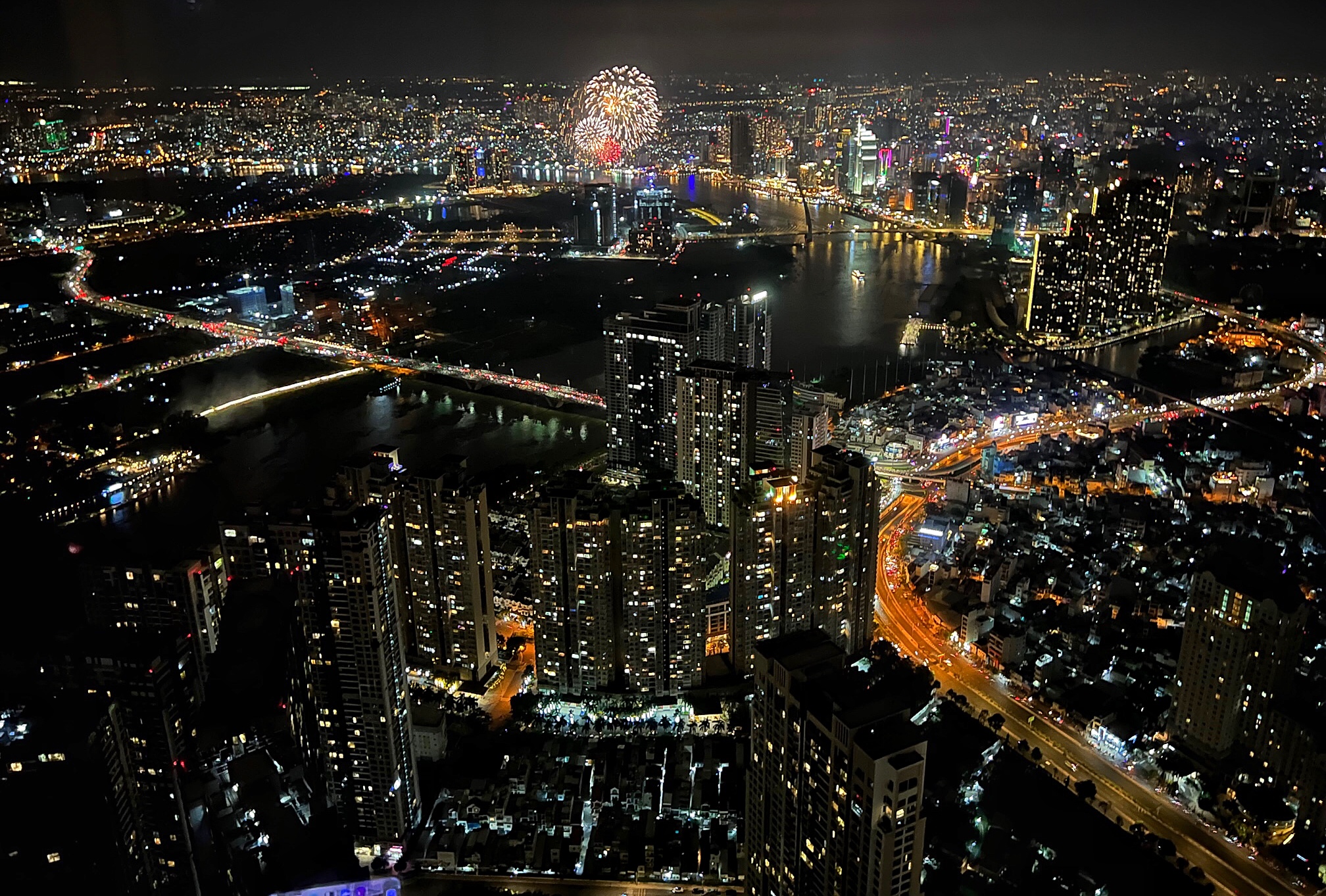 Staying on a 460 m high tower this night in Sai Gon we will celebrate at a great Japanese restaurant, looking at the fireworks across the Sai Gon river.
