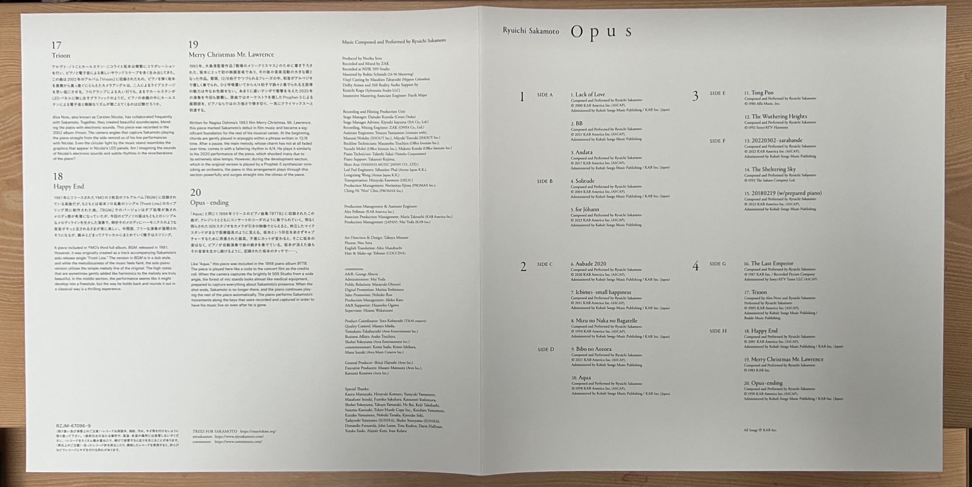 at New Years Eve I received the four 45 LPs from Ryuichi Sakamotos last work – Opus. It is the silence in between the fantastic piano accords which makes him a genius in composing and playing.