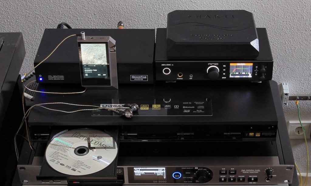 It is important to start the D.BOB first, then switching all other units, player, DAC and Tascam, into operational mode. The Tascam records DSD at 5.6 MHz. A 32 GB Micro SD card takes up to 7-8 SACDs and many analogue tapes.