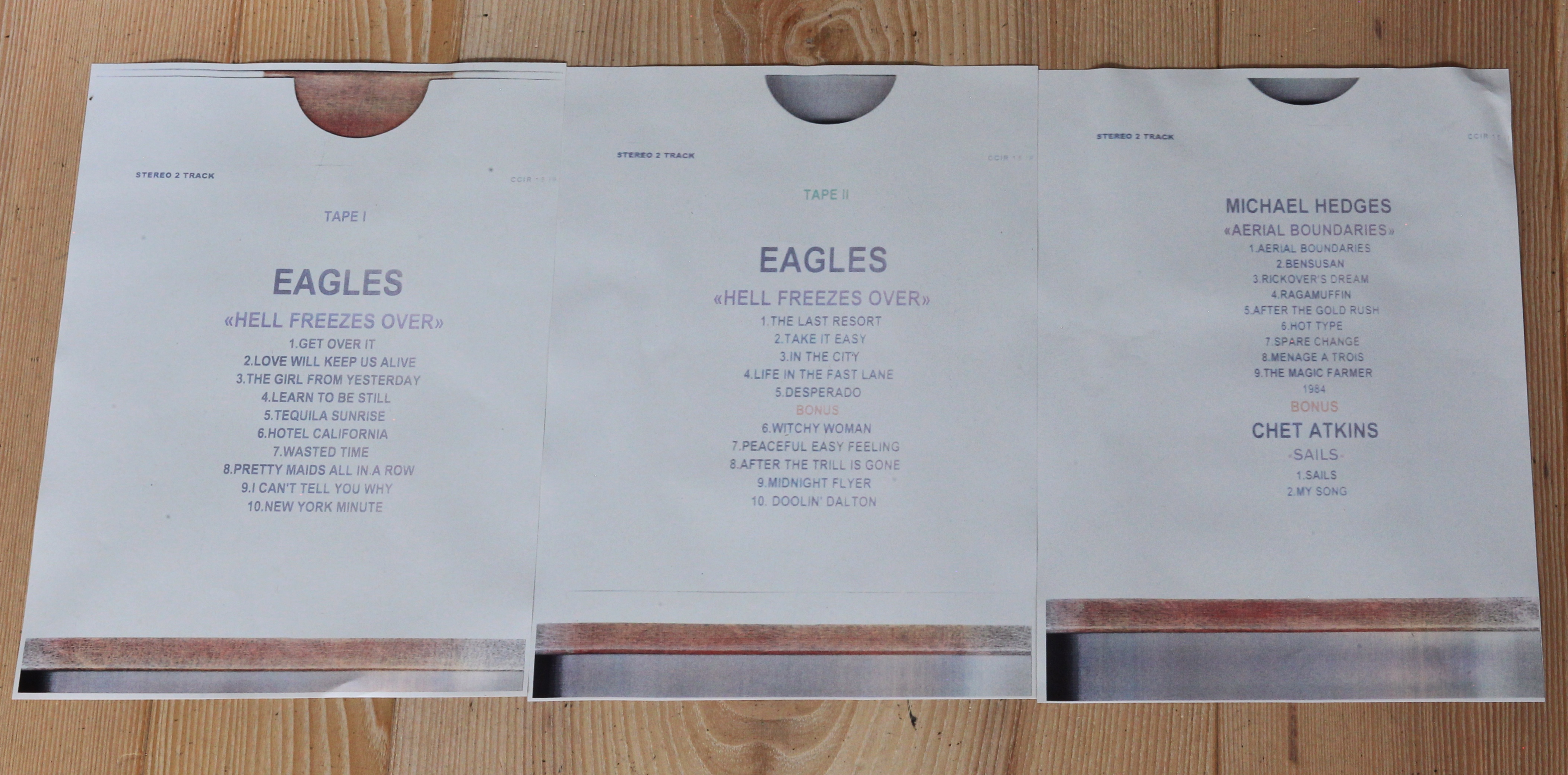 at the weekend we played some wonderful master tape copies, e.g. The Eagles – Hell Freezes Over, Michael Hedges – Arial Boundaries, and others.