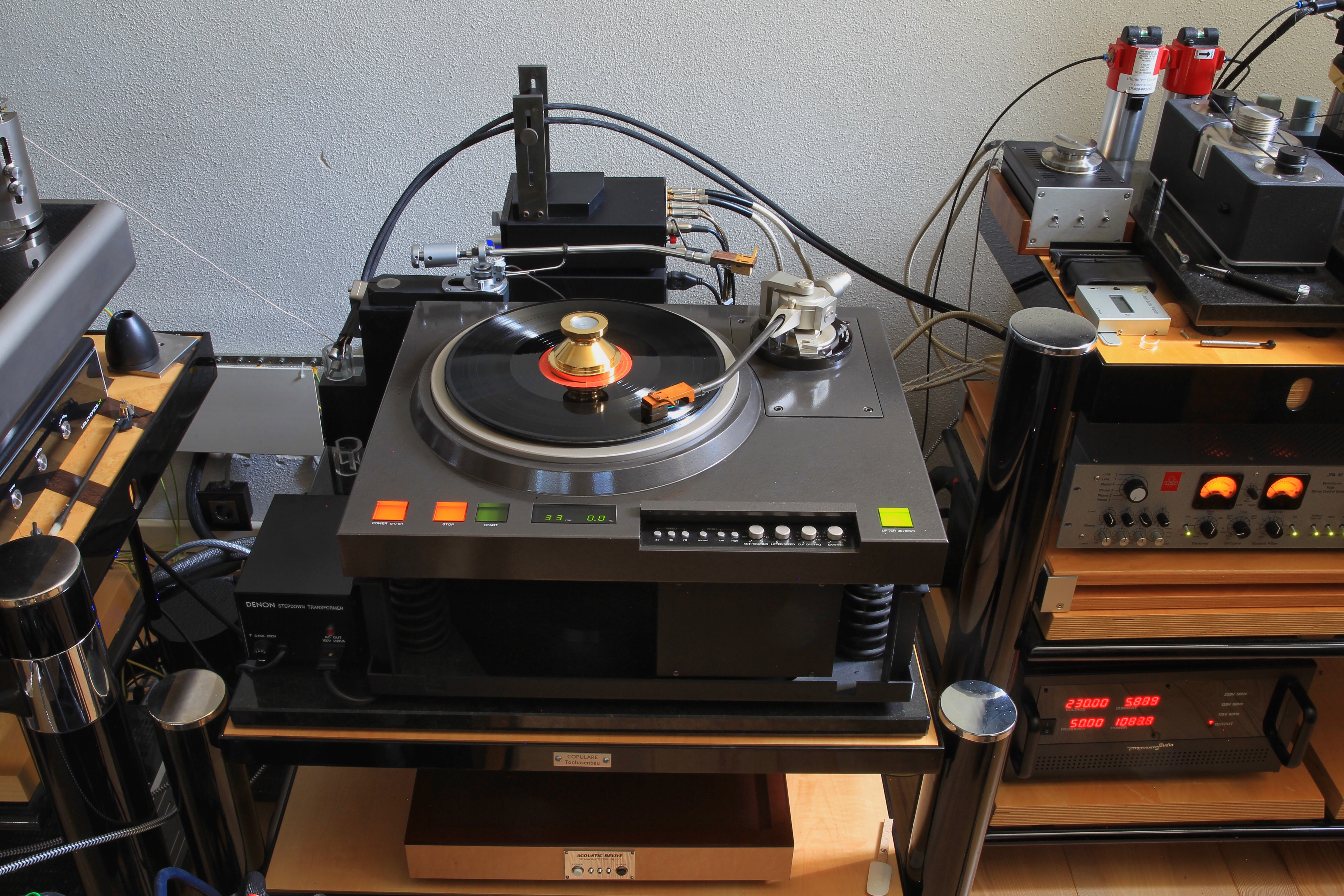 in the background you see the Coralstone Mono in an old SME 3012 (I) enabling a true Mono line via the Monophonic pre going to the EMT line.