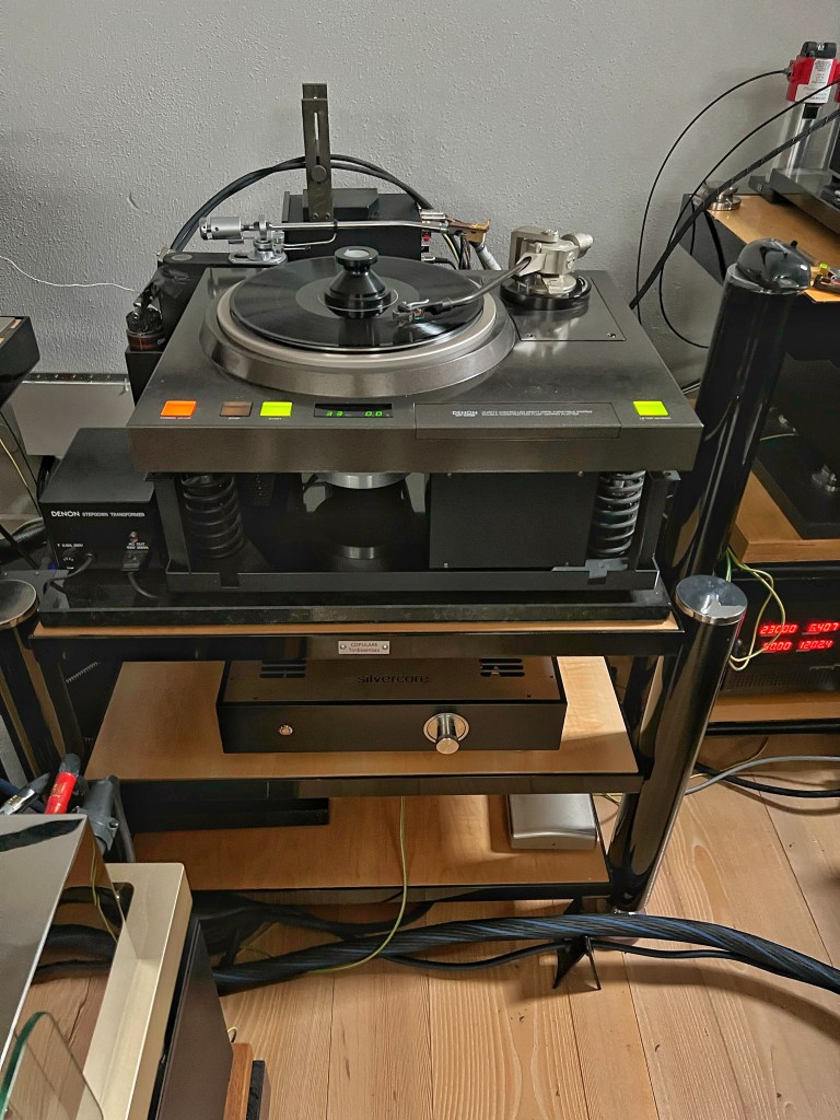the Direct Drive Denon 100M carries two tonearm tubes built into a beautiful tonearm block. This tonearm was always underrated. Indeed it is a congenial construction of the Japanese engineers having developed the Denon 100M record player including this arm with a second tube. I have improved the sockets with Furutech ones and connected with RCA – XLR Crystal Cable Dreamline cable going to the Silvercore switch.