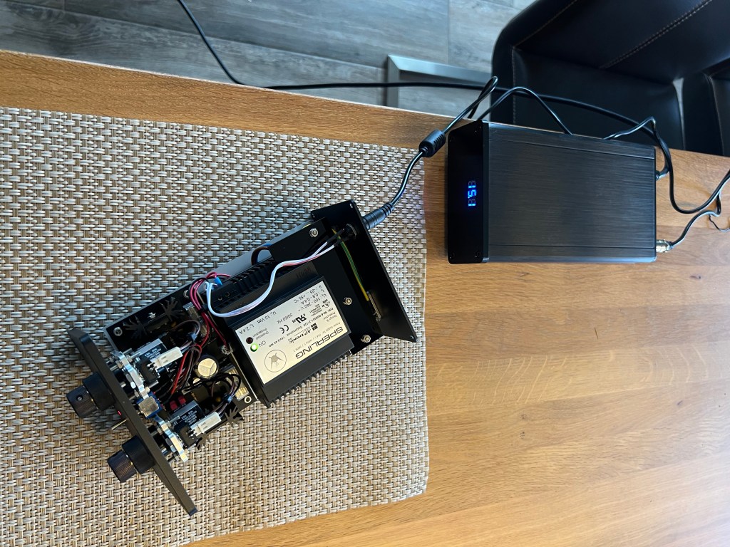 the drive unit for the Caeles II was improved by using a direct current unit (right) replacing the switch mode power supply in the left box.