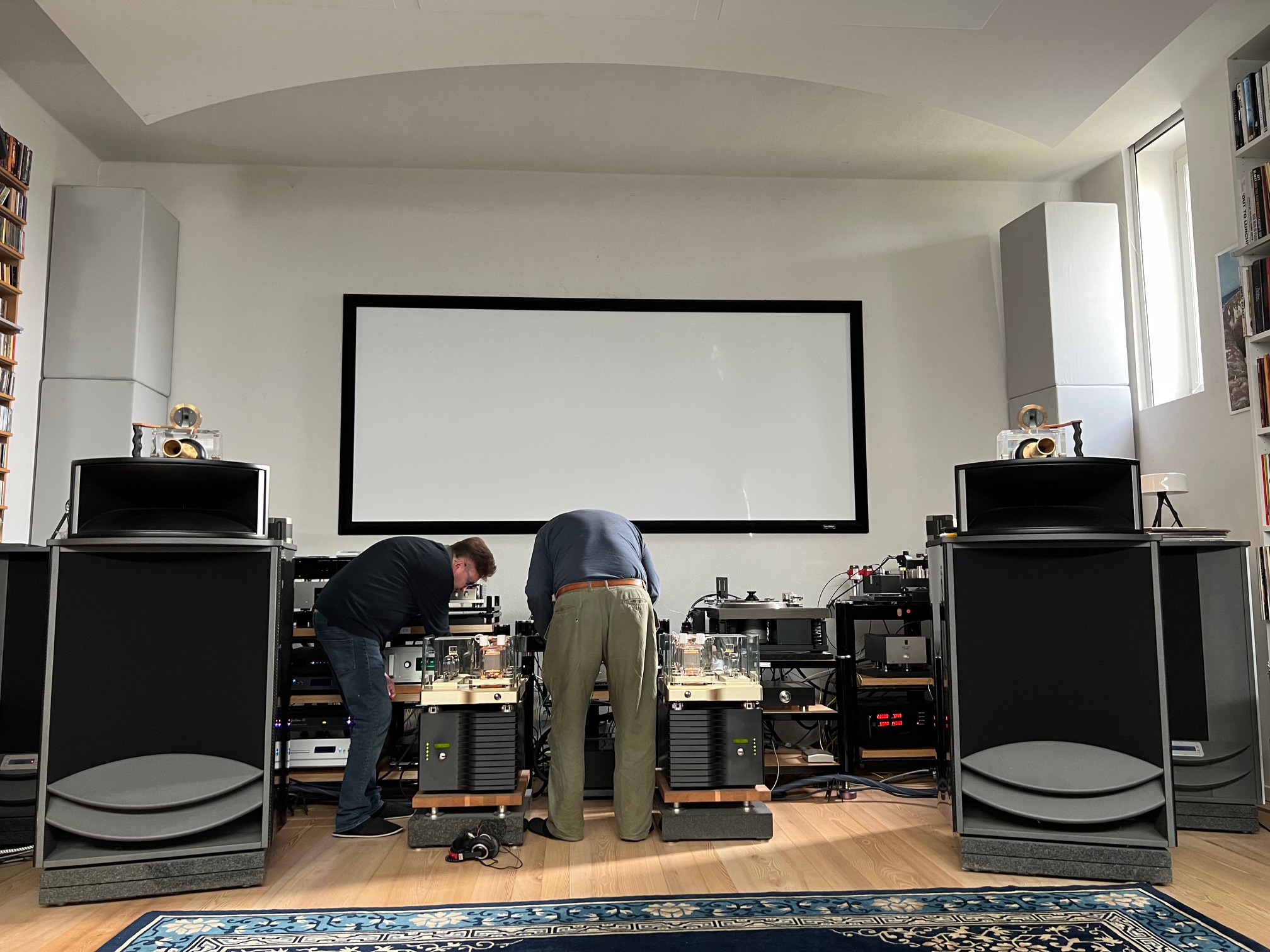 No, it was not the subwoofer system. We then went into the WAVACs. By lowering the volume the hum disappeared. We need this lower volume (1/3) of the WAVACs and at the same time need to regulate the volume at the preamplifiers (Audio Research, EMT).